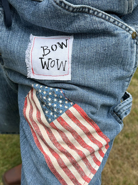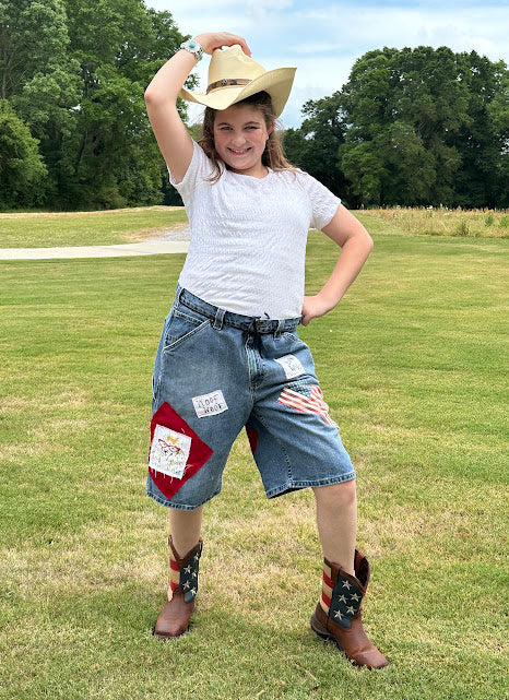 'Billie' is a true-blue, freedom-loving, loyal kind of girl. The 'Billie' Boyfriend Denim Shorts exemplify that kind of spirit. They're a pre-loved, oversized, comfy, casual one-of-a-kind denim short and are as steady as the day they were born. Upcycled with dog-themed and patriotic patches, they scream out 'I'm reliable, tried and true.'